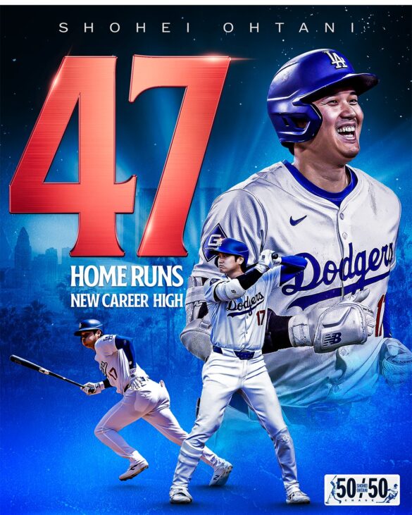 大谷今日的全壘打,擊球初速高達118.1英里(約190.1公里)讓現場主播驚呼:「這球就像子彈一樣!」而目前大谷距離道奇隊史單季最多轟也僅差兩發,目前道奇隊史單季最多轟是格林(Shawn Green)在2001年創下的49轟。