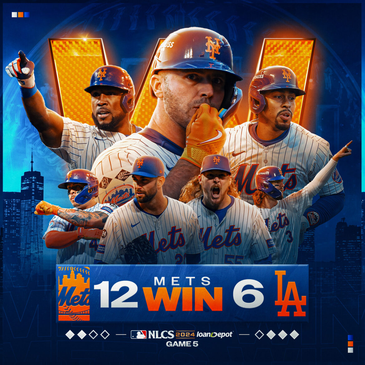 MLB國家聯盟冠軍戰第5戰,系列賽3:1聽牌的洛杉磯道奇隊試圖今(19)日關門,但先發投手弗萊赫提(Jack Flaherty)發揮不佳被打爆,先發3局被敲8安、投出4次保送,丟掉8分,紐約大都會打此戰大爆發,最終以12比6取得勝利,系列賽追成2比3。