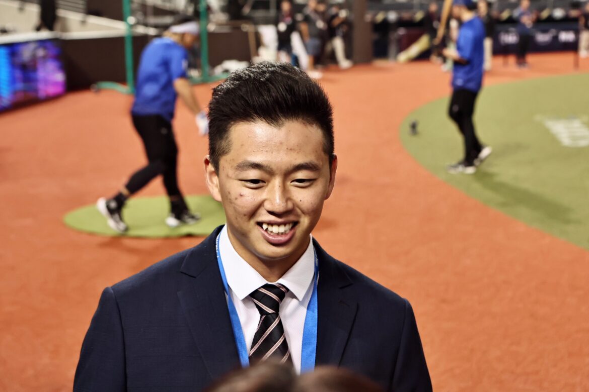 中華隊昨(13)日面對南韓,7局時代打的羅承燁敲出具有爭議的陽春砲,目前效力海盜的鄭宗哲在IG上叫屈,「我的就二壘安打、他的就全壘打」,今(14)日他亮相球場,準備球評初體驗前受訪笑說,「如果那時候是全壘打,下個打席就不會短打了。」