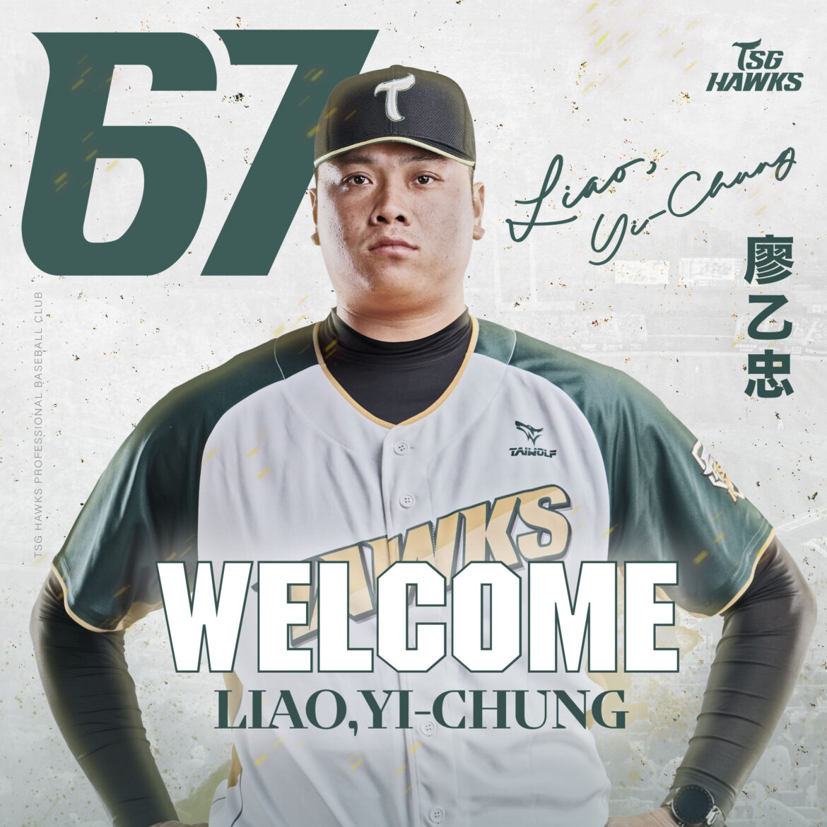 備戰隊史第2年一軍賽季,台鋼雄鷹陸續與小野寺賢人、吉田一将、魔鷹、後勁完成續約,並簽下新洋投石萬金,洋將之外,今(3)天宣布網羅本土右投手廖乙忠,補強投手戰力。2025年轉戰台鋼雄鷹,廖乙忠將穿上67號球衣展開嶄新球季。