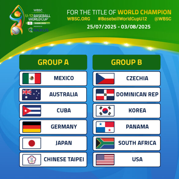 第八屆U12世界盃7月25日起在台南亞太少棒球場展開,分組也確定,中華隊與日本、古巴、墨西哥、澳洲、德國同組,另一組有美國、南韓、巴拿馬、多明尼加、捷克、南非。