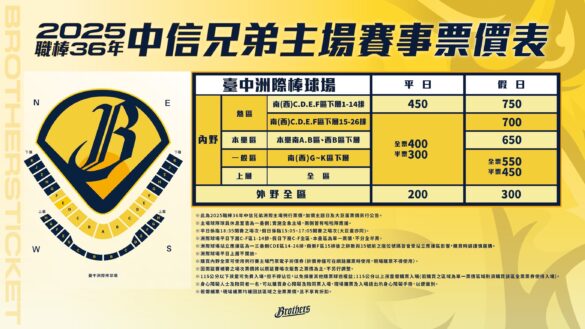 今天球團也公告中華職棒36年上半季臺中洲際棒球場售票資訊,將於3/13(四)12:00在「中信育樂售票網」、「CTBC SPORTS APP」開放2025洲際季票會員優先購票,19:00開放2025猛象會、艾樂粉會、親子象會會員優先購票,3/14(五)12:00起享象悠遊卡會員優先購買,19:00中信兄弟聯名卡(邀約制)優先購票,3/17(一)12:30於「中信育樂售票網」、「CTBC SPORTS APP」及「7-11 ibon售票機台」全面開放購票!