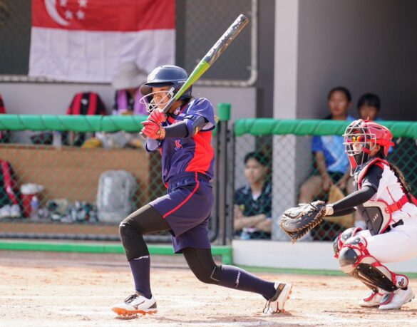 新加坡開路先鋒恩雅擊出全隊第1支安打,隨後跑回唯一分數。 (中華壘協提供)
