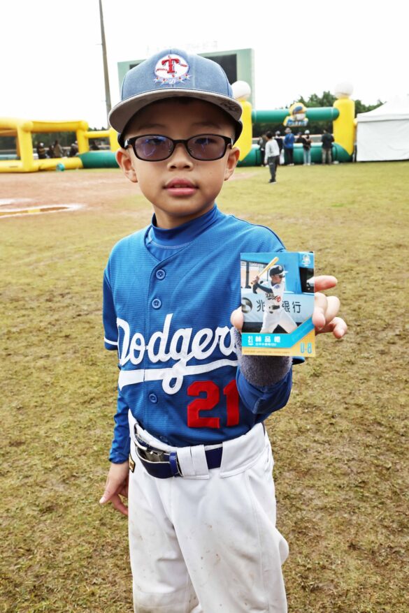 台中道奇少棒林品橙從小跟著打乙組的父親林信蒼在球場玩,4歲就加入球隊,今年才8歲,已越級打U10組的比賽。拿著去年秋季大賽的球員卡,林品橙淡淡的說:「第1次拿到很開心,現在有幾張,感覺還好。」林信蒼則說:「家長才會當成寶,有的家長會特別去護貝,跟獎牌、獎盃一起放在櫃子上。」