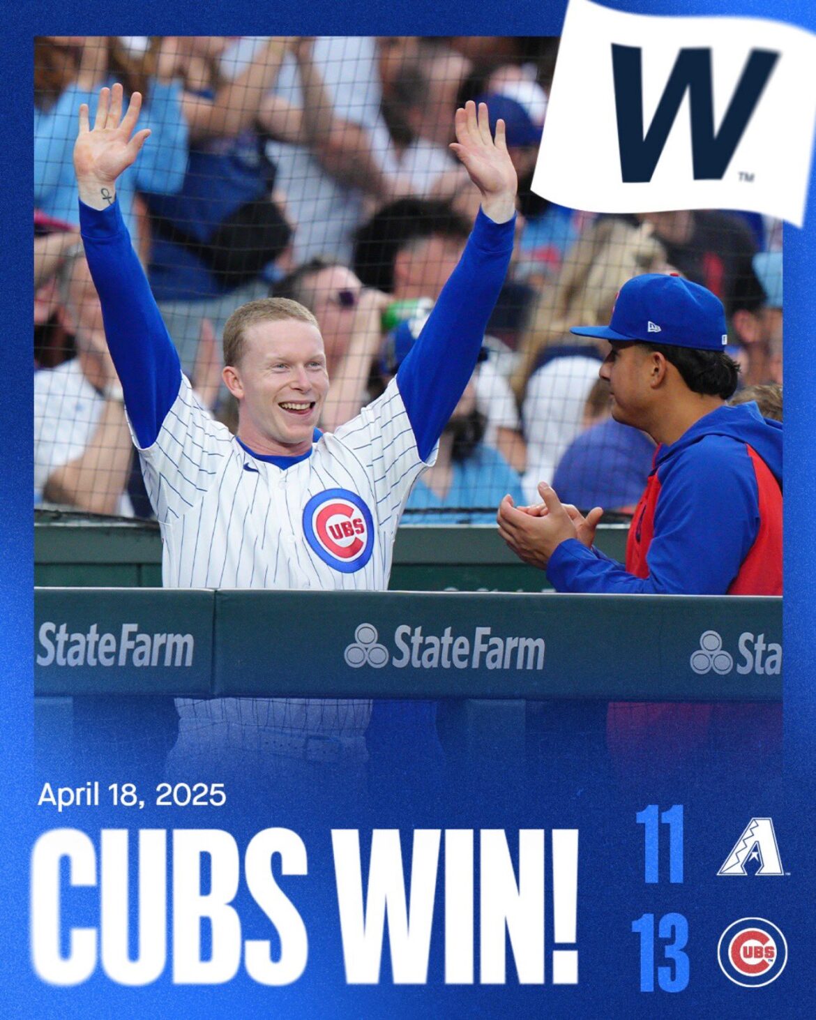 小熊隊今(19)日在主場瑞格利球場迎戰亞利桑那響尾蛇,雙方在第八局共灌進16分,創下國聯歷史紀錄,最終小熊以13比11驚險奪勝。