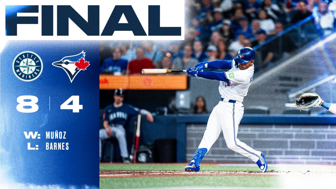 多倫多藍鳥今天在主場迎戰西雅圖水手,雙方鏖戰到延長賽第12局,最終以4比8落敗,結束近期的三連勝。正規九局打完雙方3比3平手,進入延長賽後,水手隊在12局上靠著阿羅薩雷納的安打與泰倫茲的滿貫全壘打單局攻下5分,奠定勝基。藍鳥隊雖在12局下追回1分,但無力逆轉。