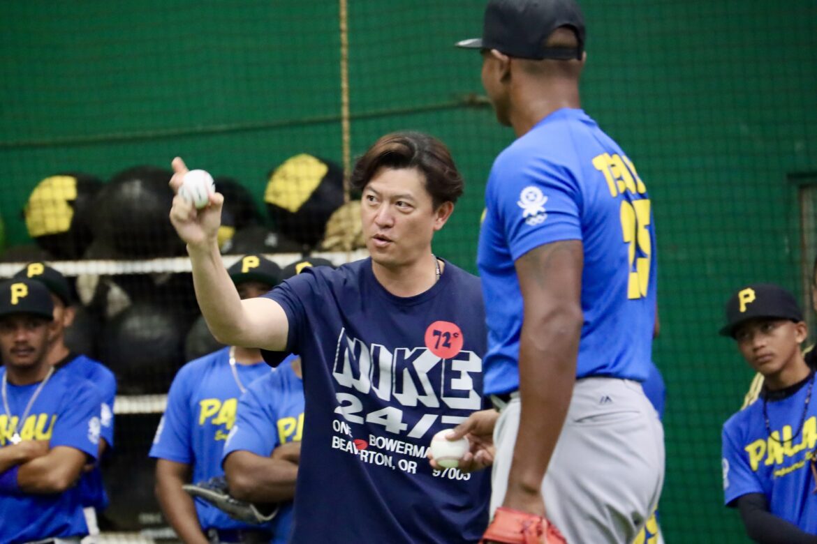 王建民教練表示,感謝鄭世忠署長的邀請,非常高興能受邀參與這項臺帛運動交流計畫。帛琉投手們有很不錯的基礎,今天針對一些投球細節進行調整與指導,希望能幫助他們投球更有效率。訓練內容包含握球技巧、投球姿勢調整、軸心腳的蓄力運用,及他威震美國職棒大聯盟的「伸卡球」投法等。