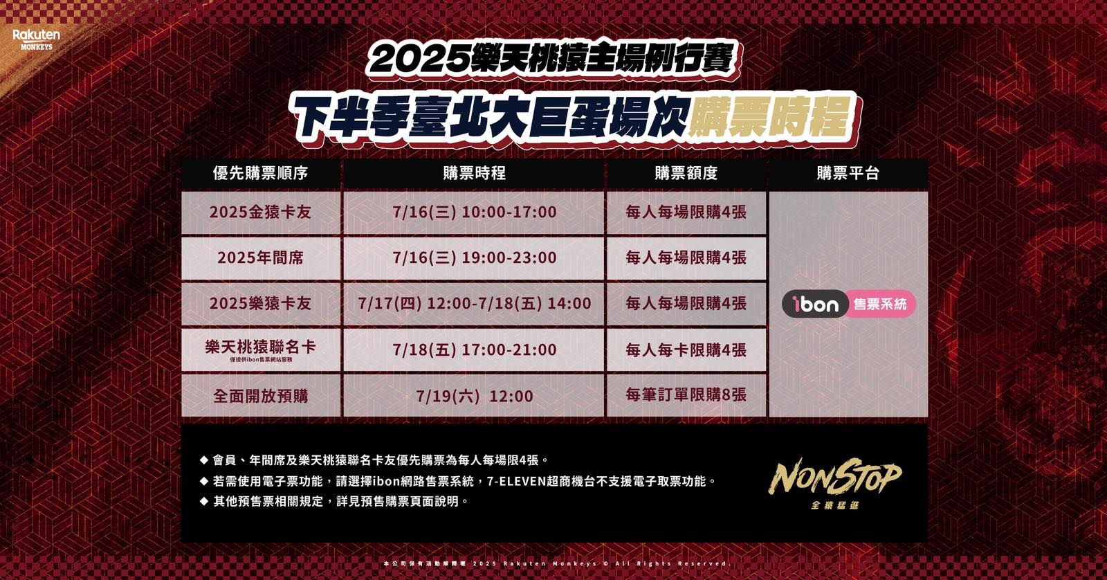7/17(四) 12:00 – 7/18(五) 14:00 ➤2025樂猿卡優先購票