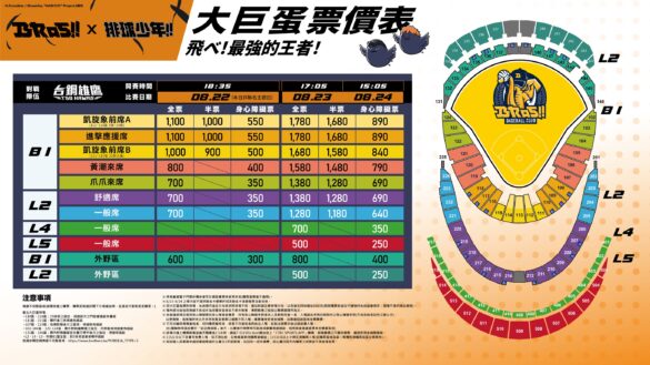 今天中信兄弟球團也正式公告《排球少年!!》聯名主題週,以及《Zespri快充 兄弟快衝!》下半季平日大巨蛋主場售票資訊,售票時間將於7/15(二)中午12點30分,依序開放季票會員及具會員資格的球迷朋友購票,7/18(五) 中午12點30分則將開放全面售票,邀請百萬象迷一起進場,集結進化力量!