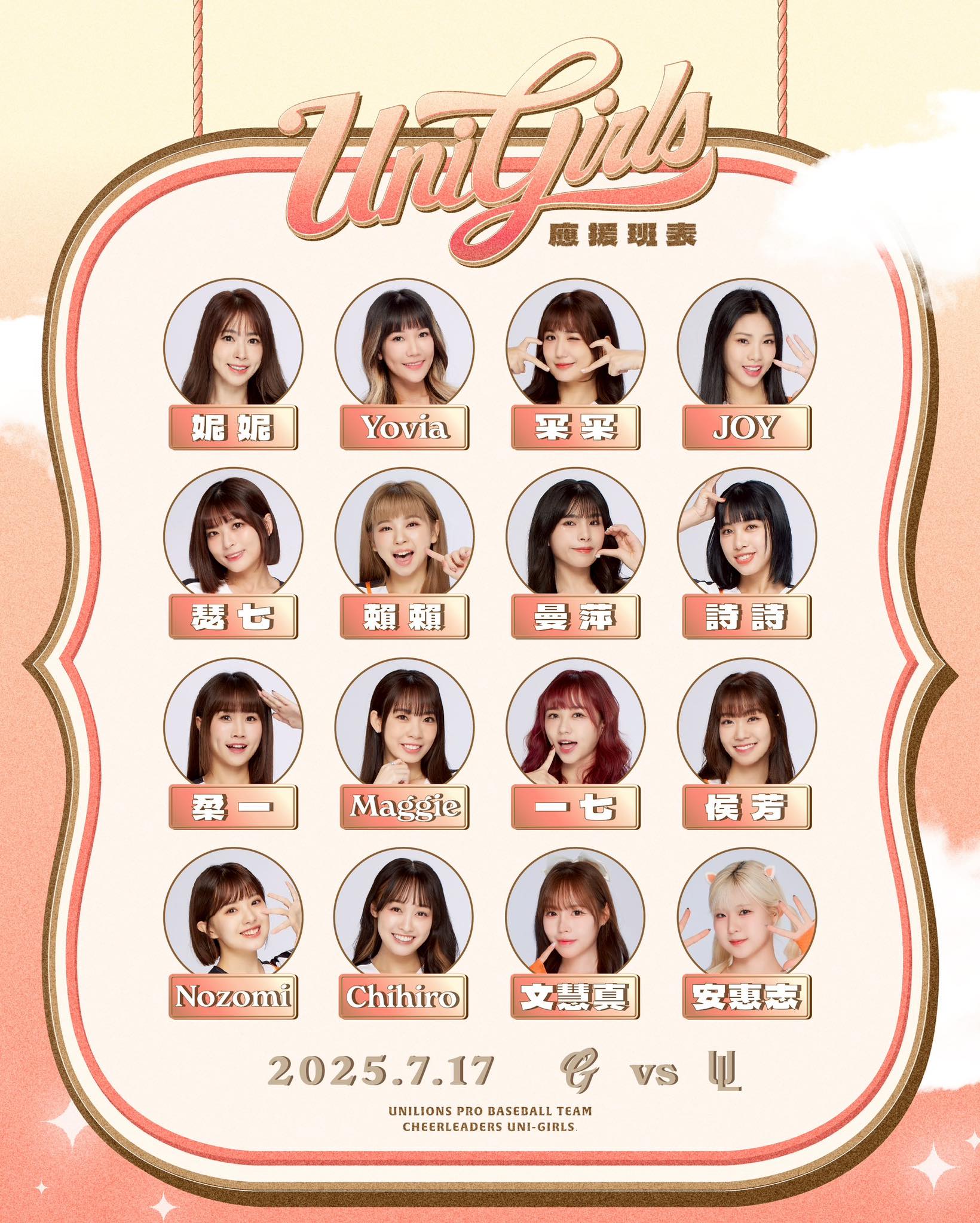 獅隊久違的新莊棒球場主場賽事,為感謝北部獅迷長期支持,連續兩天UniGirls女孩應援人數從12位增加到16位,其中外籍千紘Chihiro、希美Nozomi、文慧真、安惠志均會一起應援,其中連續兩天五局中場,均有安排女孩個人舞蹈秀表演,7.16(三)一壘舞台區包子、三壘舞台區Yuki,而7.17(四)一壘舞台文慧真、三壘舞台安惠志,歡迎北部球迷一起進場為獅隊應援加油。