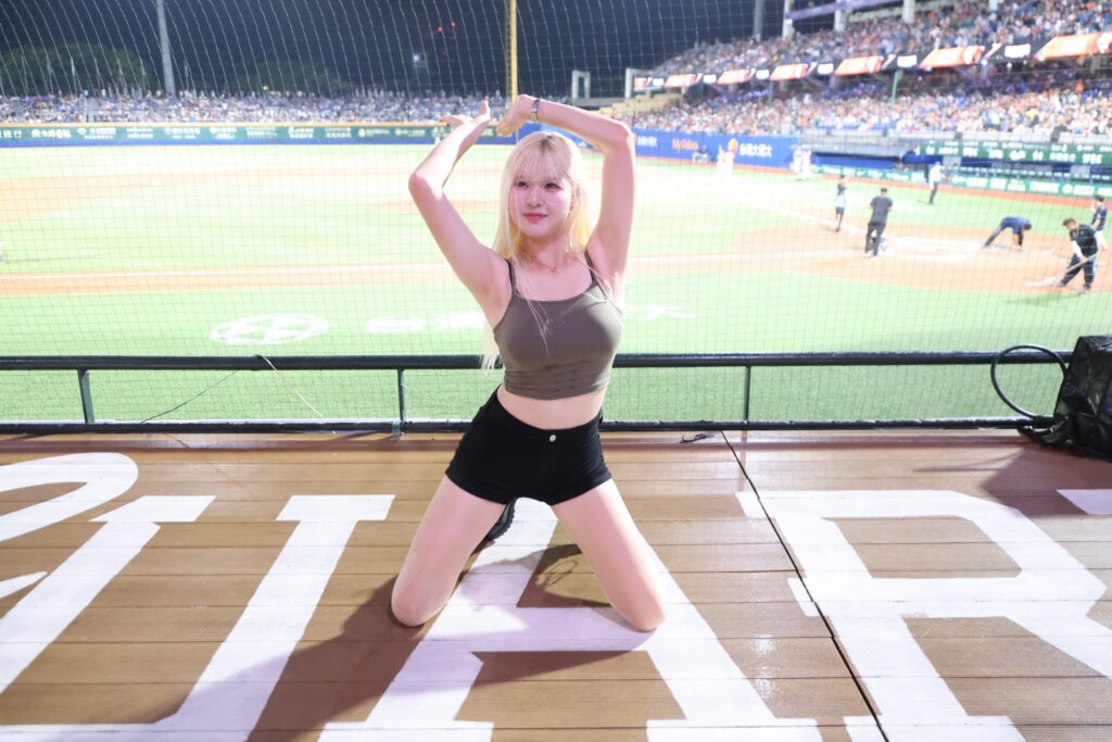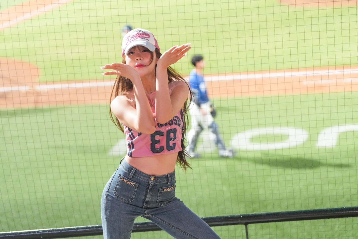 首先登場的是文慧真,懷舊舞曲集錦加上休閒打扮,讓球迷一秒回到復古韓曲時代,她表示,第一次在澄清湖表演是小虎隊的「青蘋果樂園」,這次也選擇韓國懷舊,「希望透過這次的機會讓球迷知道,如果沒有這些前輩,之後也不會有這些Kpop組曲,啦啦隊也無法表演Kpop,想透過這個機會告訴大家前輩們的重要性。」