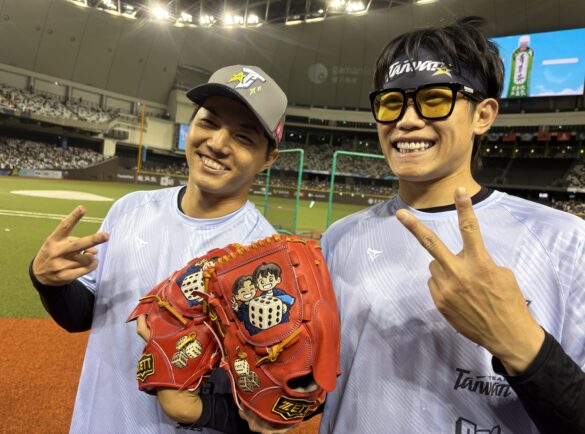 2025年中華職棒明星賽今日在台北大巨蛋登場,統一7-ELEVEn獅投手郭俊麟與超級好朋友樂天桃猿左投陳冠宇拿著相同特製款式的手套亮相,令人印象深刻。
