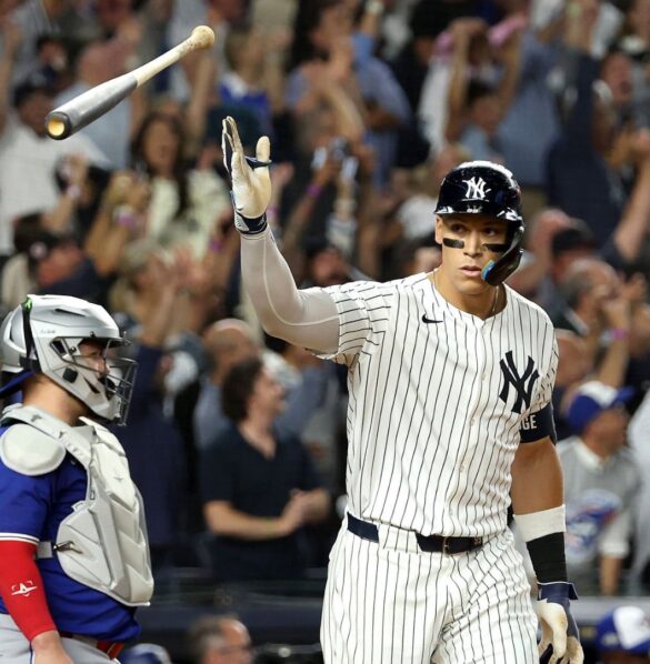 在背水一戰的關鍵時刻,紐約洋基在主場展現驚人韌性!美聯分區系列賽第3戰,洋基在一度落後5分的劣勢下,由隊長「法官」賈吉(Aaron Judge)在第4局轟出追平三分砲帶起反攻氣勢,終場以9比6擊敗多倫多藍鳥,避免遭到橫掃,將系列賽扳成1比2,成功延續晉級希望。