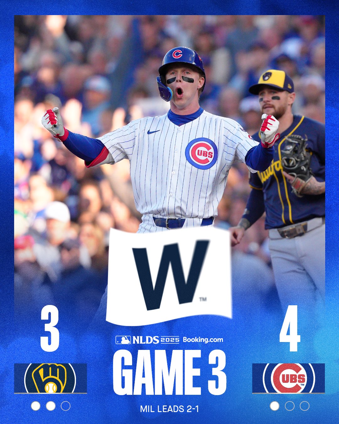 在美國職棒大聯盟(MLB)國聯分區系列賽的第三戰中,面臨淘汰危機的芝加哥小熊隊,靠著首局的猛烈攻勢奠定勝基,最終以4比3險勝密爾瓦基釀酒人隊。小熊隊成功避免了被橫掃的命運,將系列賽戰績追至1勝2敗,釀酒人隊仍握有聽牌優勢。雙方將於明天進行第四場比賽。