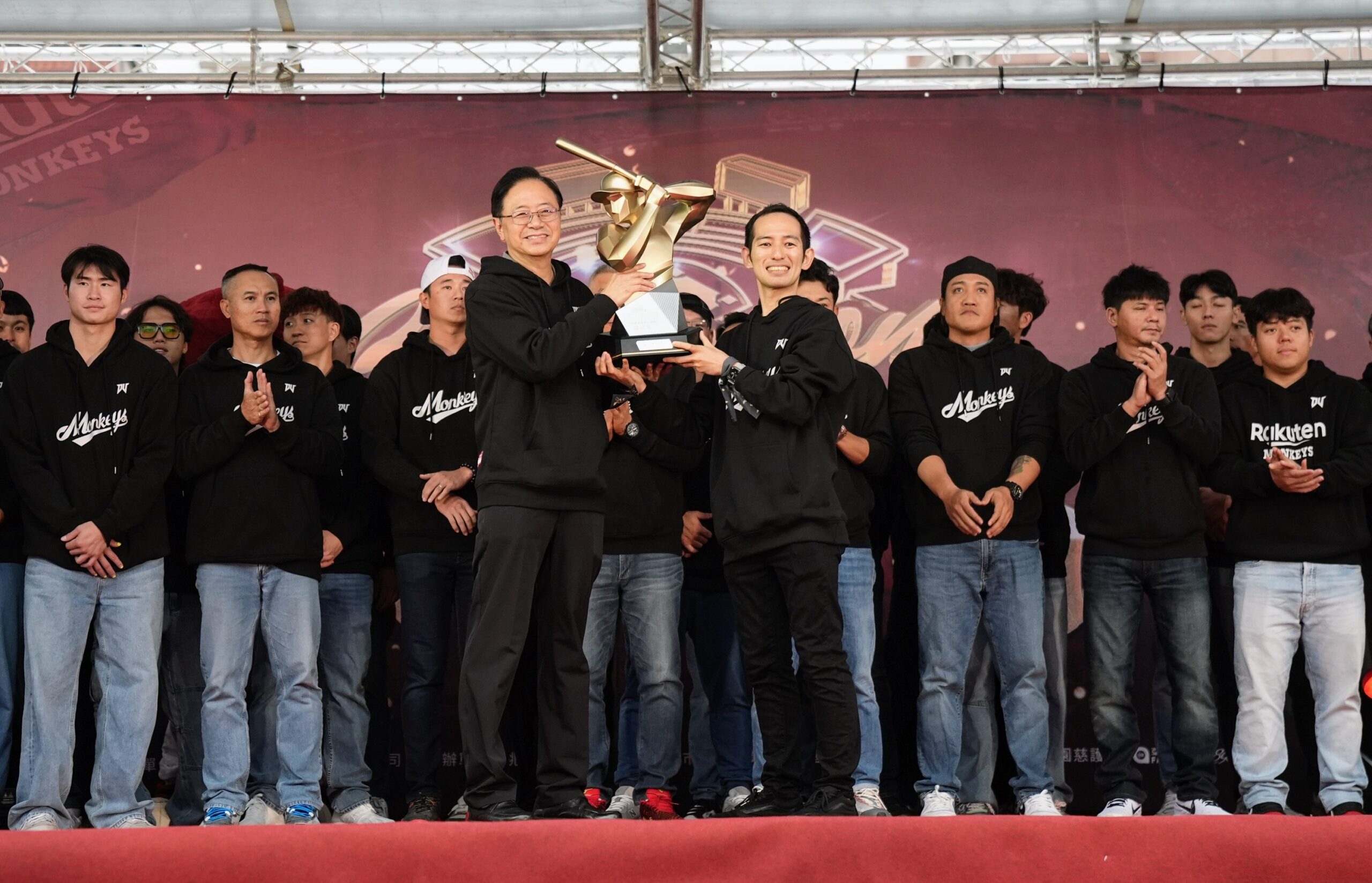 桃園市長張善政參與樂天桃猿奪冠慶祝儀式。(圖:桃園市體育局提供)
