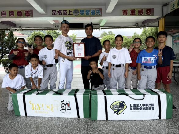 因此,協會立刻行動,訂製兩組專業「滑壘墊」,捐贈給這兩所學校,讓孩子們即使在天候不佳或場地受限時,也能在體育館或室內空間進行滑壘、撲壘、滑接、撲接等技術訓練。