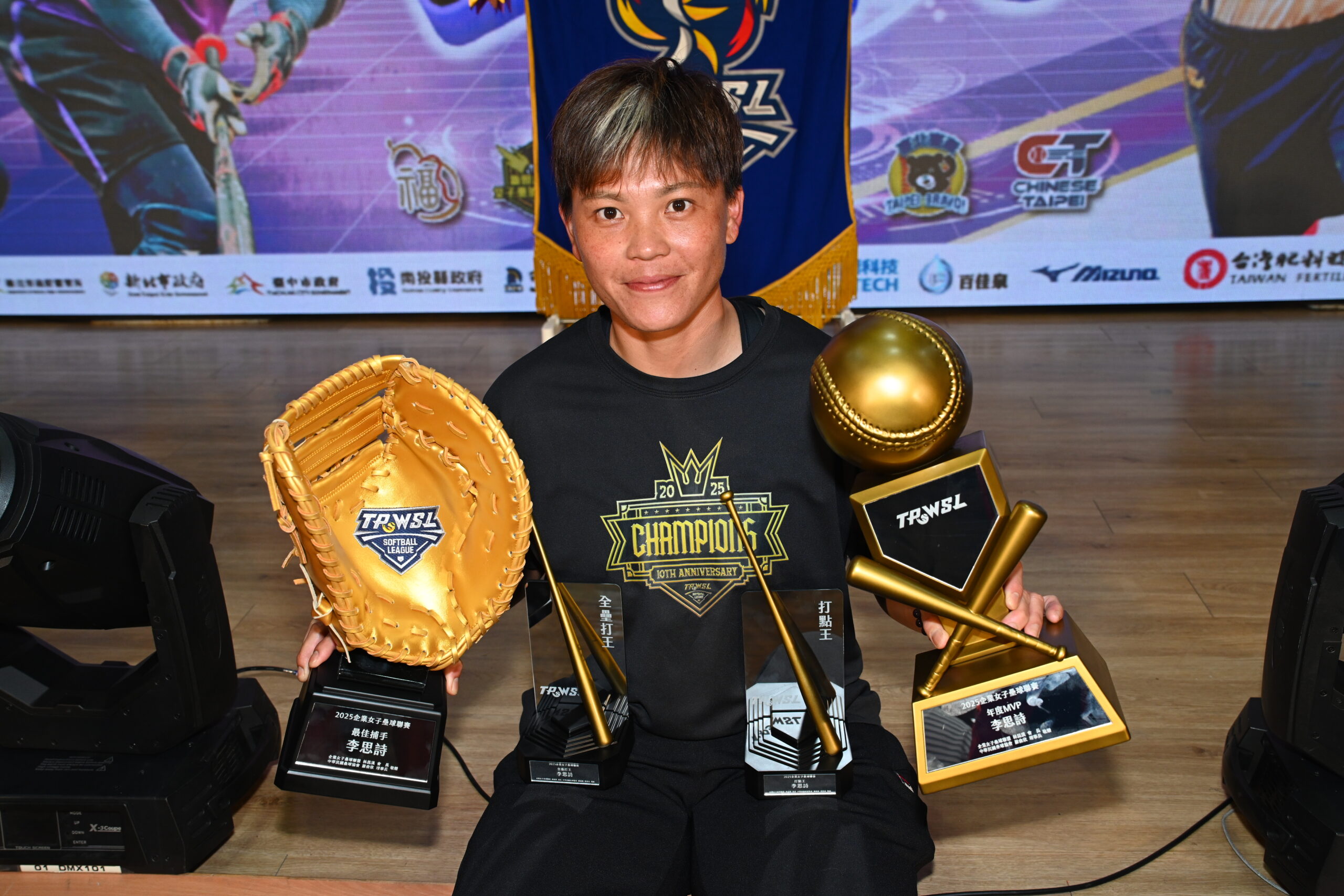 企聯年度MVP一直是投手的天下,李思詩是唯一曾獲獎的野手,但足足等了9年才再次獲選,她說:「這是努力的證明,它不是終點,它在提醒我,我還能更強。未來我會繼續為球隊、為國家、為女壘全力以赴,站在更高,讓大家看見我們。」對於未來的目標:她說:「第1個拼2026年亞運金牌,第2個拿到2028年奧運門票。」