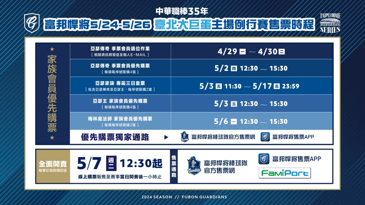 富邦悍將大巨蛋售票時程表。(圖:富邦悍將提供)