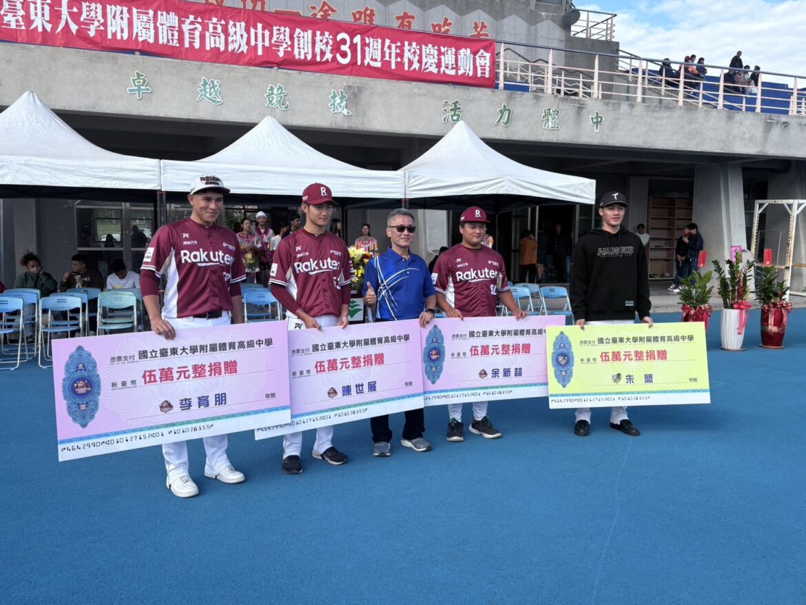 感恩母校臺東體中 職棒新秀朱盟、陳世展、李育朋、余新喆捐款回饋