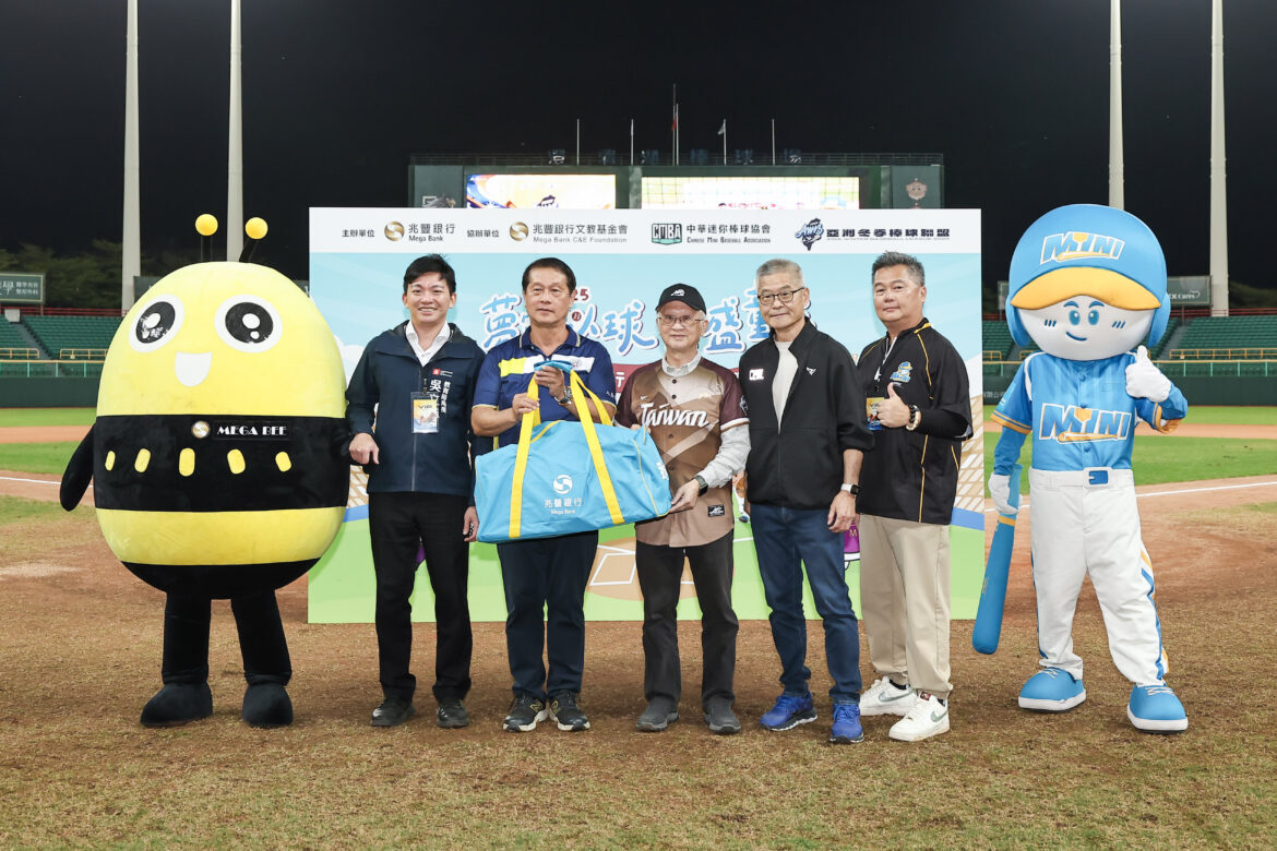 中華職棒冬季聯盟四強戰今天(6日)在高雄澄清湖球場開打,兆豐金控暨兆豐銀行董瑞斌董事長受邀為賽事開出精采好球,並舉辦「夢寐以球,豐盛童年」迷你棒球公益球具致贈儀式,贈送高雄地區 75 所小學迷你棒球球具組,由八卦國小校長吳軒銘代表接收。