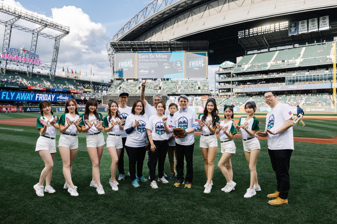 水手隊台灣日今日在T-Mobile球場盛大舉行,吸引了眾多球迷的矚目,由Wing Stars一粒、螢螢、林浠、瑈瑈、昆昆、妡0及恬魚在現場展現活力與魅力,開場表演更是將現場氣氛推向了高潮,「雄鷹展翅」音樂在主場響起,讓台式應援成為了整個球場的主旋律,讓現場球迷的熱情沸騰不已,這場充滿台灣元素的開場表演,不僅展現了台灣文化的獨特魅力,也為球賽的氣氛增添了一絲絲的熱情與活力。