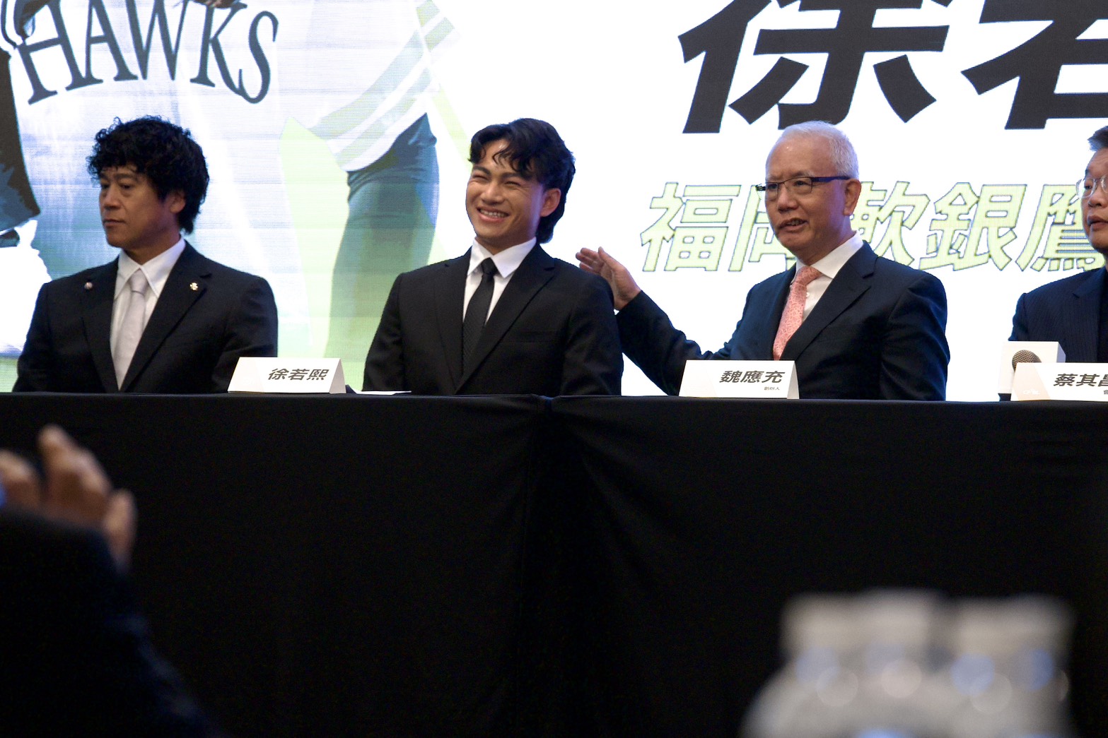味全龍25歲本土王牌投手徐若熙明年轉戰日本職棒軟銀隊,今天舉辦加盟記者會,爸爸徐文虎回顧若熙一路打球歷程,透露明年一定到現場見證若熙的初登板,在身邊當啦啦隊。