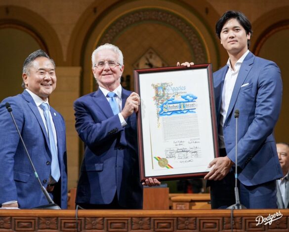 洛杉磯道奇隊球星大谷翔平,在週五(17日)於洛杉磯市政廳受到了表彰,宣佈在他效力道奇隊期間,每年的5月17日將被命名為「大谷翔平日(Shohei Ohtani Day)」。