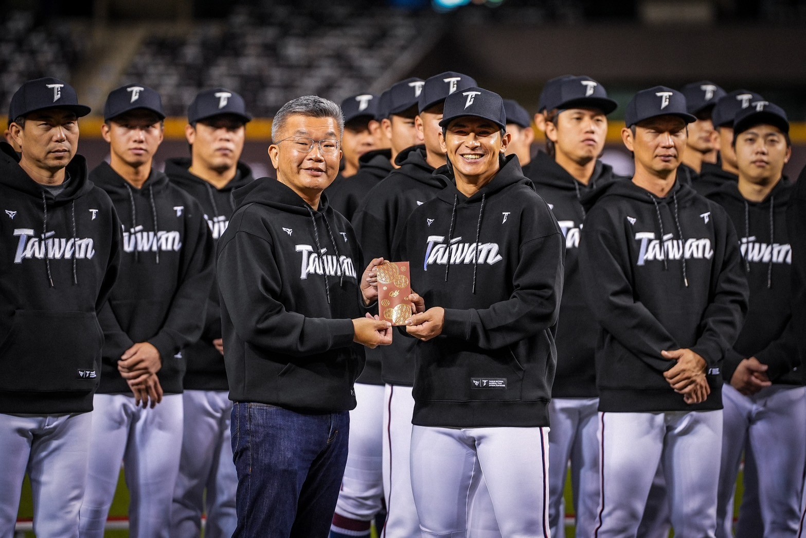 從集訓到正式比賽期間,球員們在場上全力拚戰,教練團與後勤團隊也在背後全力支援。選手們在賽事中展現永不放棄的拚戰精神,讓球迷感動萬分。蔡會長深感欣慰,認為大家的努力都值得肯定,因此特別加發獎金向全隊表達感謝。