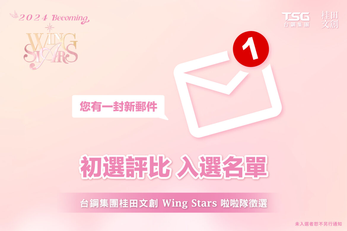 Wing Stars今日(15)於官方粉絲專頁公布第二階段入圍名單,複賽將於7月27日、28日兩天在台鋼科技大學舉行,共有65人的入圍陣容,於新秀複賽中,入圍者除了掌握時間進行自我介紹外,還須完成歌唱、舞蹈演出及自編的應援歌曲舞蹈,一對一的把握最精華的十分鐘,向評審團展現自我,爭取專屬培訓機會。