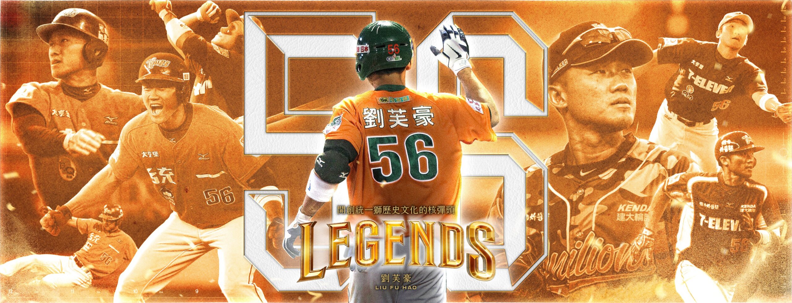 56 劉芙豪是獅隊另一個世代的優秀傑出選手,隊史首位達成生涯千安、百轟、百盜榮耀紀錄,天天三分砲痛擊韓國SK飛龍成為亞職大賽球迷心中最感動的回憶,從初登場的青澀新秀,到球隊關鍵時刻最值得信賴的打者,他一次次在逆境中挺身而出,用球棒寫下屬於自己的篇章,在球隊內展現團隊合作精神,互相分享態度及持續進化的職業信念。